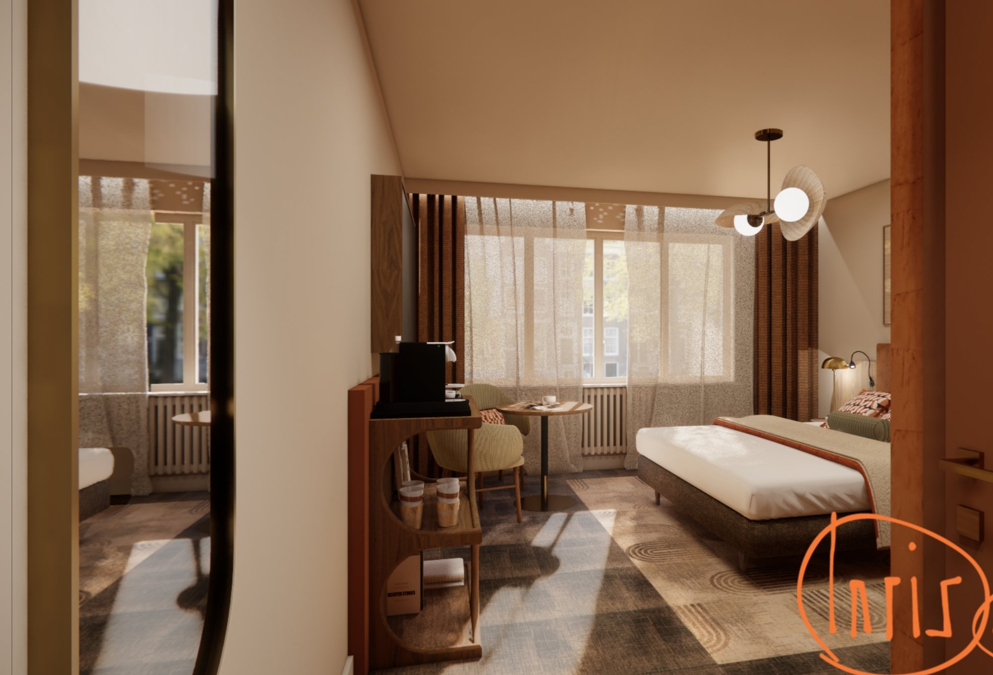 Het hotel heeft een complete metamorfose ondergaan, met oog voor het karakter van het pand en het comfort van nu. Warme tinten, natuurlijke materialen in de negen hotelkamers zorgen voor een ontspannen sfeer waar je echt even kunt opladen.